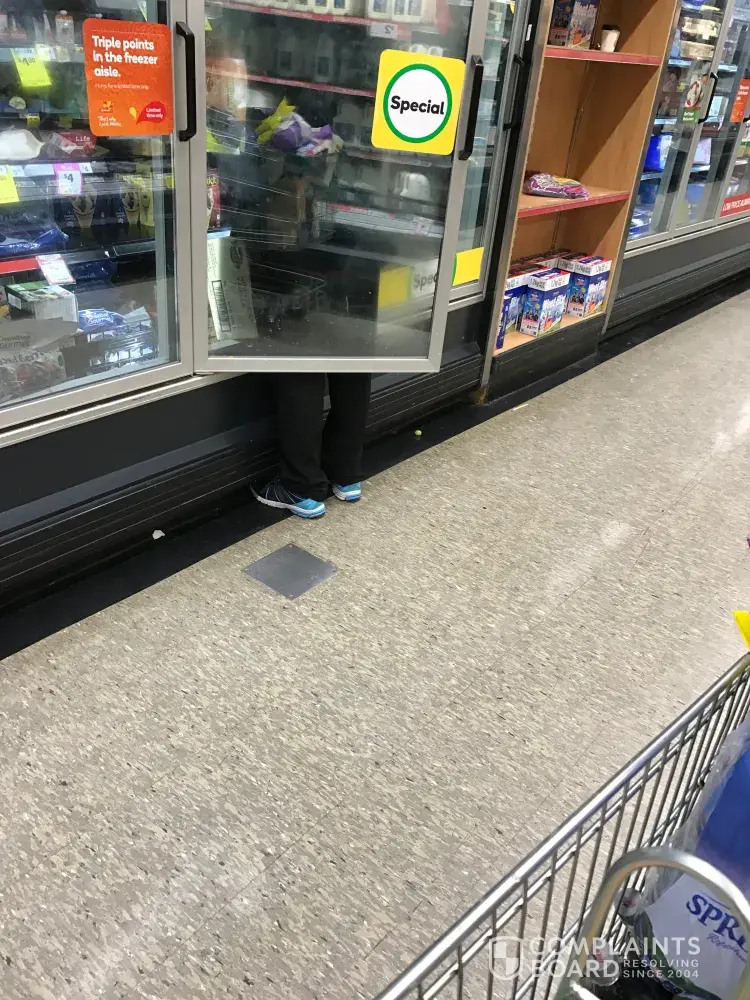 How can a store still operate under such poor conditions. Food all over the floor, filth underneath the frozen food sections, food spoils on doors... the list goes on.