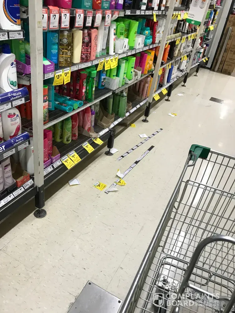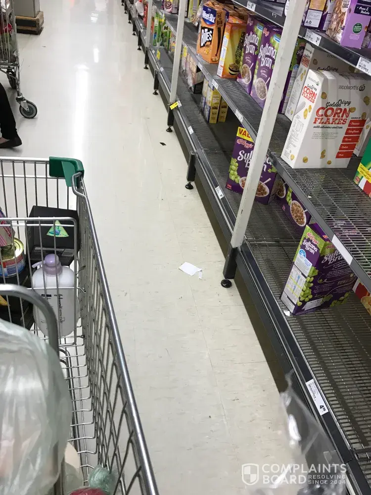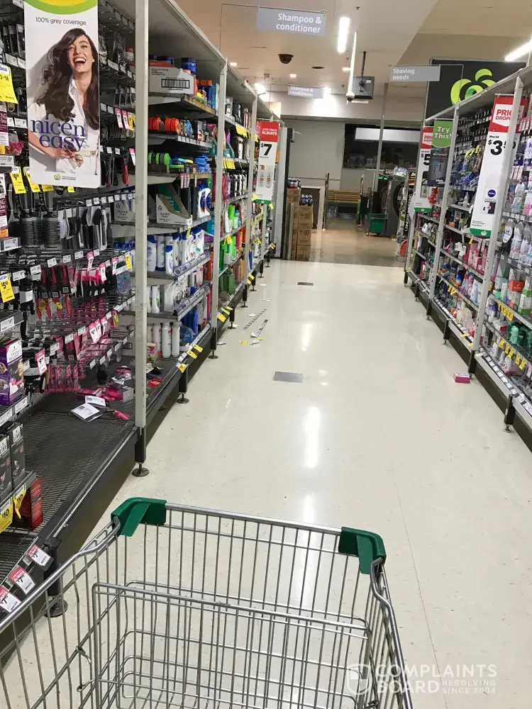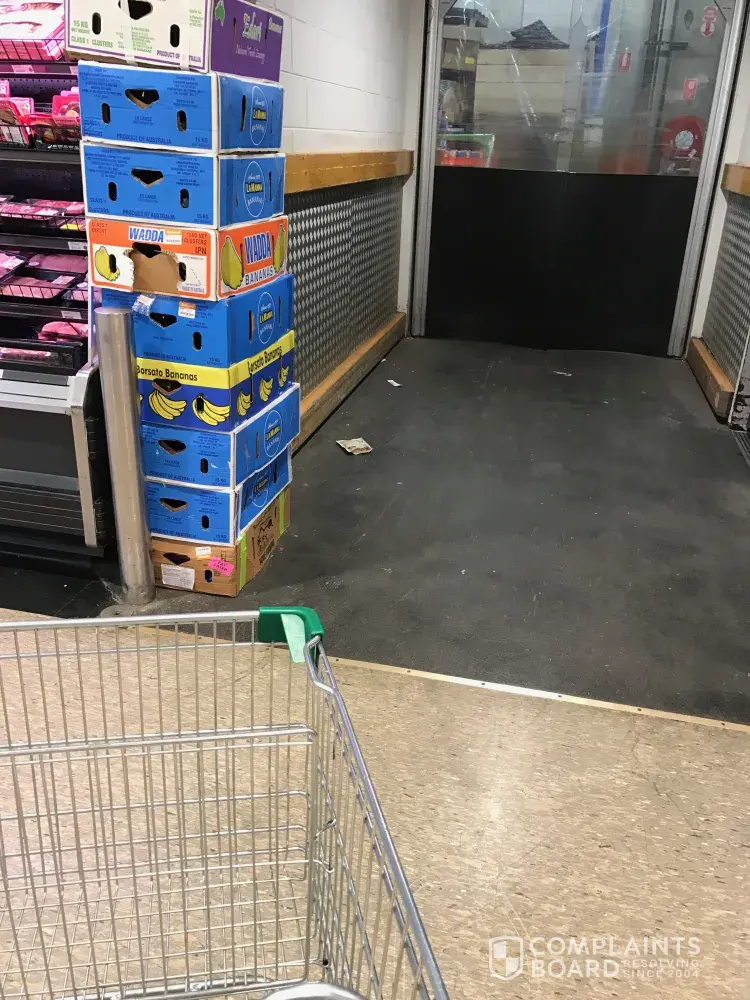 On top of this... hardly any trolleys available, products not on the shelf, empty boxes everywhere, products on floors and just a mess everywhere.