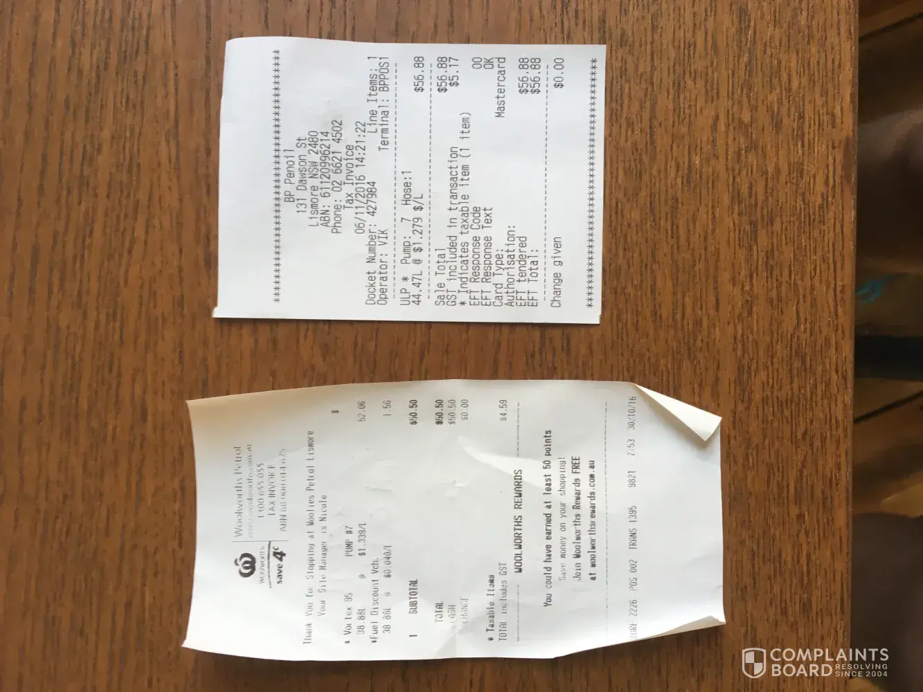 On 30.10.2016 I purchased Vortex 95 fuel from Woolworths Petrol in Lismore Store 2226, and the fuel economy was poorer than what I would usually get from standard 91 octane fuel.