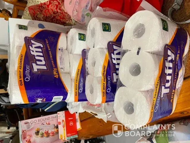 Quilton Tuffy Paper Towel Triple Length white 360 sheets $6 each was replaced with a lower price item Quilton Tuffy Paper Towel White 4 Ply 180 Sheets 3 Pack 6 $ 4.30 each. for quantity of 6, refund $6 - $4.30 = $1.70 x 6 =$ 10.20