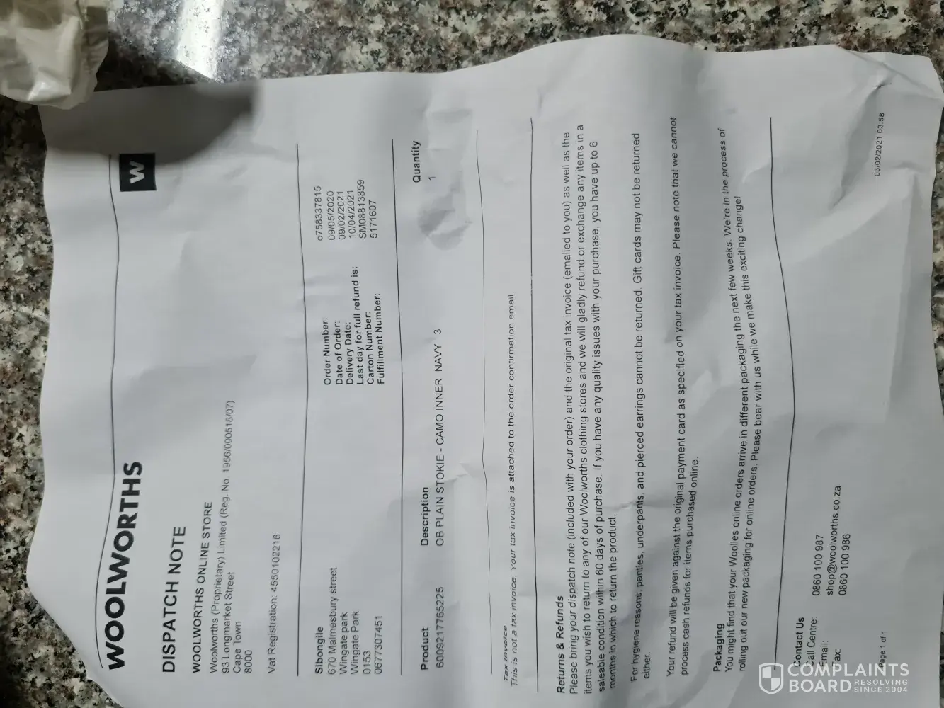 4. I contacted every conceivable department of Woolworths to resolve this.