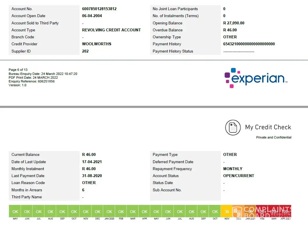 I paid my Woolworths Store Card in full in August 2020. They have listed me for not paying my account. I have requested this matter be resolved and that this be taken off my credit record but the credit department / debt collection staff are rude and unhelpful. I need to obtain the paid in full letter and only then will Woolworths Financial Services update Experian (maybe?). But I cannot do this unless I get the PAID IN FULL LETTER! I have not received this and despite calling numerous times - no one has assisted me!