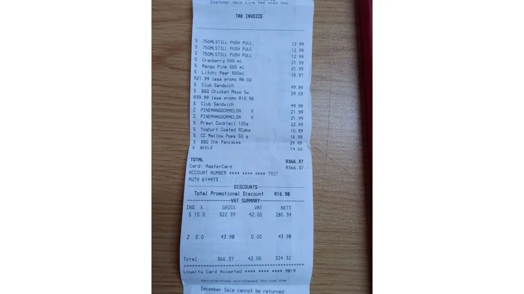 Bought in Port Elizabeth Greenacres on the 13th May 2022
