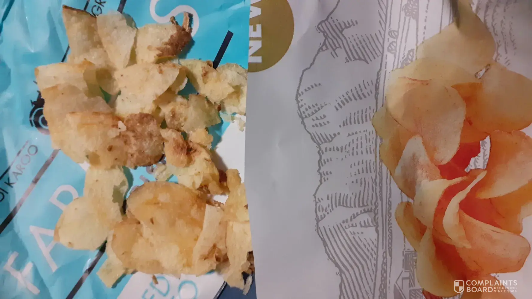 I bought The rooi karoo locally grown Farmer's crisps. And was very disappointed, very nice packaging and nice clean picture of the crisps on the packet. But when opened, the crisps was brown and tasted burnt.