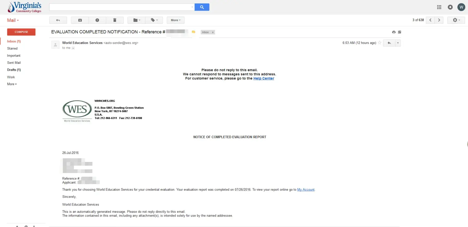 My experience with WES has been a nightmare. I started the application two months in advance just to be on a safe side for my admissions date. It's been two months and I am still going back and forth with my documents. They are prompt with the service, all right. I get an email immediately as soon as they get my documents and let me know if they are accepted or no. The problem is THE DOCUMENTS ARE SOMEHOW JUST NOT GOOD ENOUGH FOR THEM!