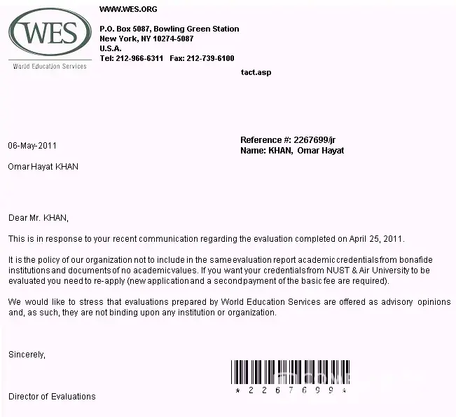 I am a Lecturer in a College of the CUNY, in NEw York. I was adressed by their HR to have my University Degree translated and turned into American Academic standards. Eversince I have been dealing with WES it has been a hell for me. I paid them 229 US dollars, I sent the required documents. Eversince it has become more and more absurd. They expect that my What follows is an extract from an email I sent them in November: