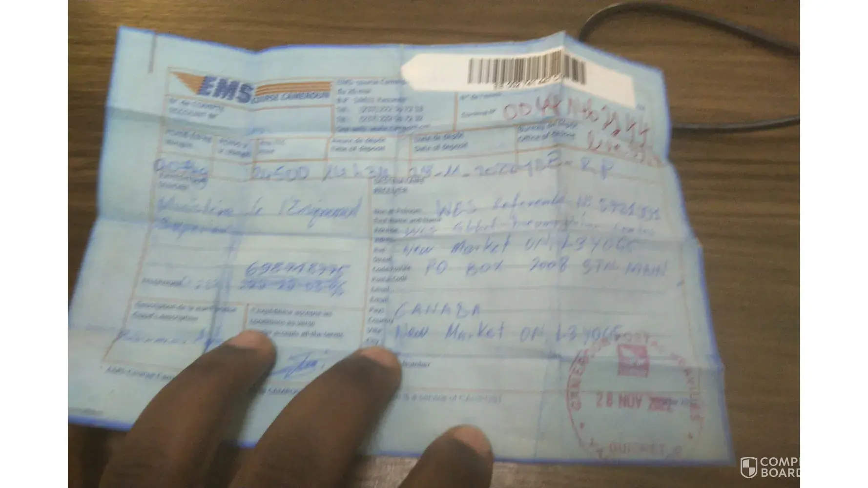 Dear examiner my problem is about my transcript and diploma i s'en througt the post on the 28/11/2022 and 06/12/2022 for the WES local at Ontario.