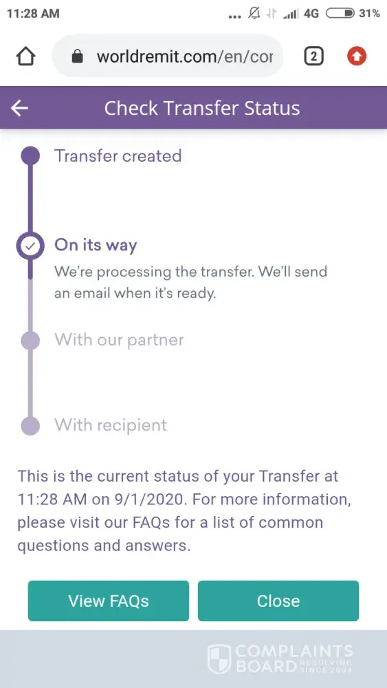I transferred money to my own bank in the US and it never arrived. I called worldremit multiple times but all they said was it has been paid and I should check with the US bank. I've checked and checked and nothing.