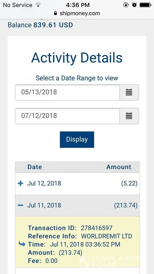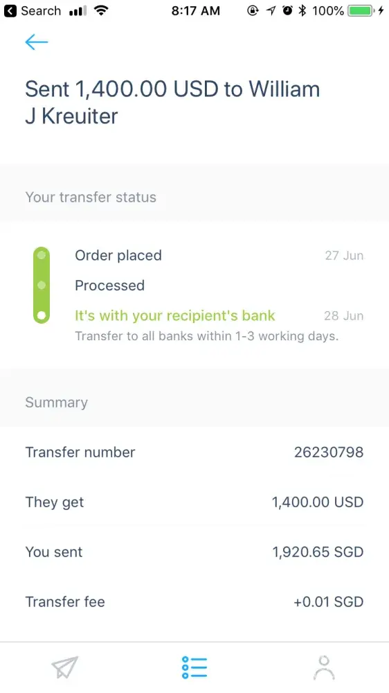 The transfer was initiated on 27th July 2018 for $1400 USD, but until i write this complain (2 weeks after), the recipient still not received the money. All the details provided are correct in the transfer.