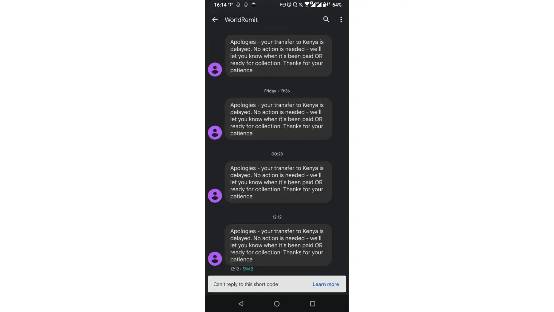 Hello. I sent money on Thursday 17 November morning. I keep getting text and email message that you are having some issues: "Apologies - your transfer to Kenya is delayed. No action is needed - we'll let you know when it's been paid OR ready for collection. Thanks for your patience."