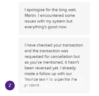 WorldRemit Agent Michael Diofre (7/8/2021, 7:51:44 PM): Lesley, I tried cancelling but there's a technical issue as of the moment. This has already been forwarded to the technical team.