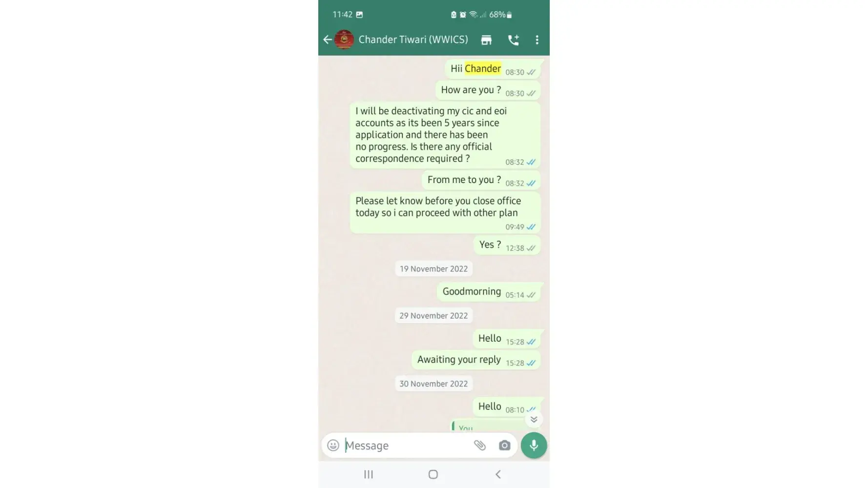 I had registered with them five years ago after they convinced me that my profile is good enough to get a visa. They are very active until receive 100% payment upfront. After that I have had to follow up heavy by email, phone and meeting them up in office. Later I found out that we are paying huge sums of money only for them to fill a simple application form online. They even closed up the bahrain country office without letting us know. Attached two photos showing my last communication with their representative from India Chander Tiwari which clearly shows how active they are when coming to new sales and when asking any clarifications.