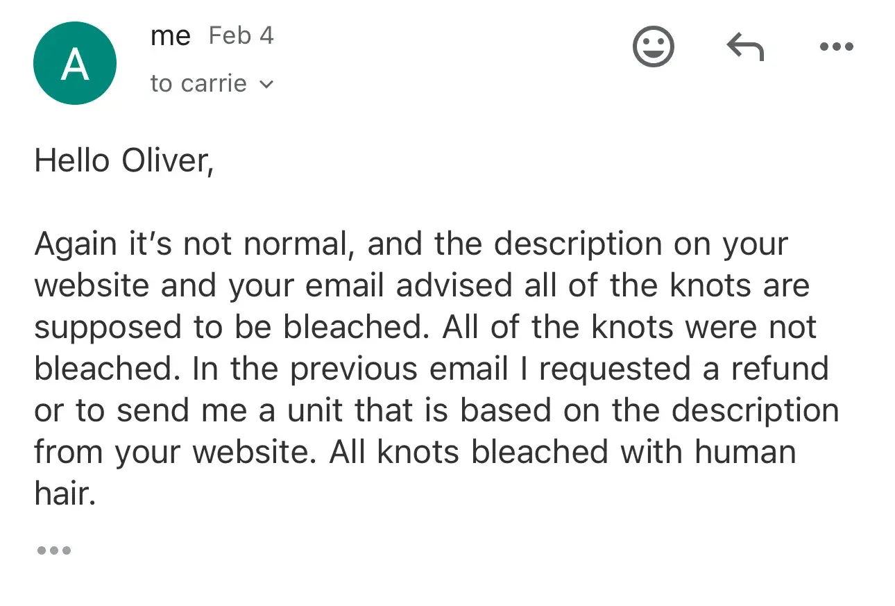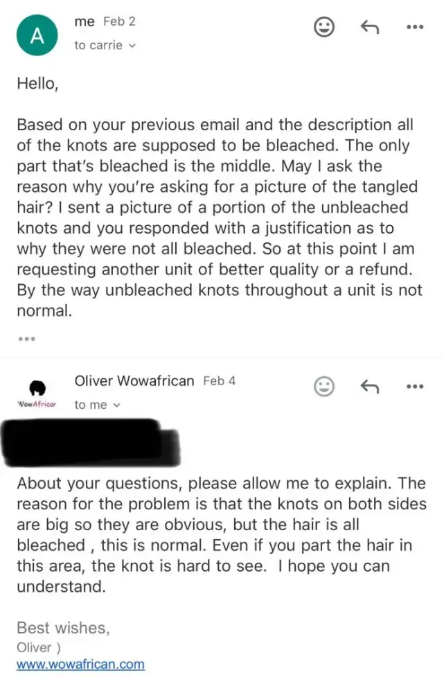 As a result of these issues, I can no longer wear the wig as it looks unkempt and unmanageable. Throughout my interactions with Wow African, I experienced attempts at gaslighting and poor customer service, leading me to seek a refund through Afterpay, which unfortunately was denied.