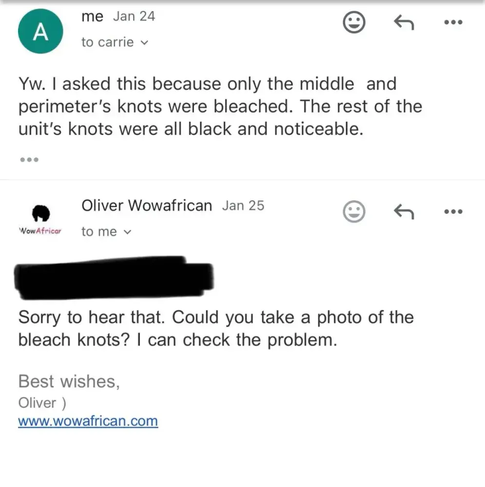 I am writing to formally complain and warn other consumers about the subpar quality and deceptive practices of Wow African Wigs. My experience with Wow African has been nothing short of disappointing and frustrating, and I feel compelled to share my story to prevent others from falling victim to their unethical business practices.
