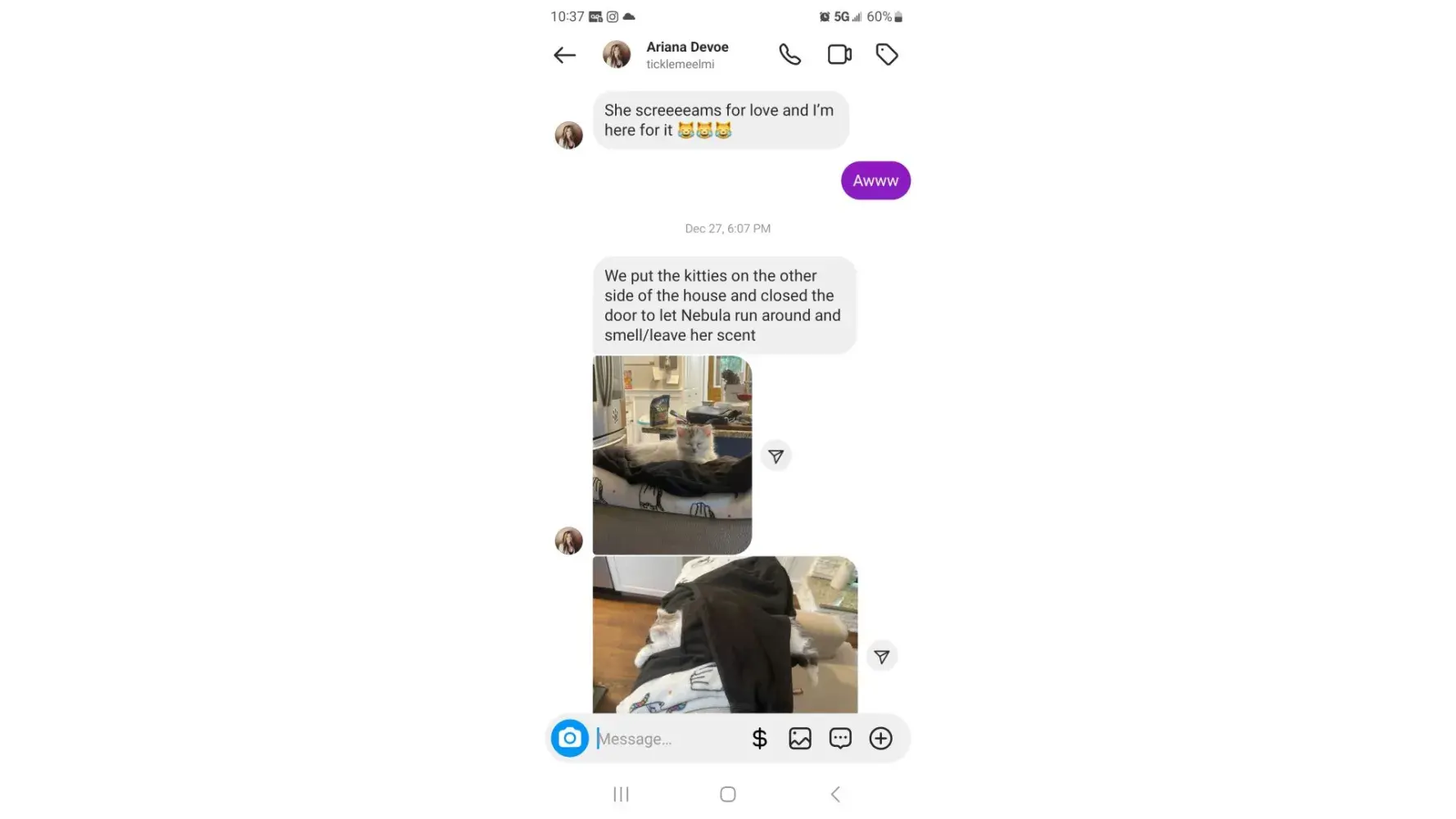 Also, we had a total of only 6 cats in our office space, one mom and the five kittens. This was the only kittens in our entire cattery at the time. I'll attach SS of the other buyers I've been in contact with, one who also took the mom, stating no issues with their kittens or other cats that live in their homes.