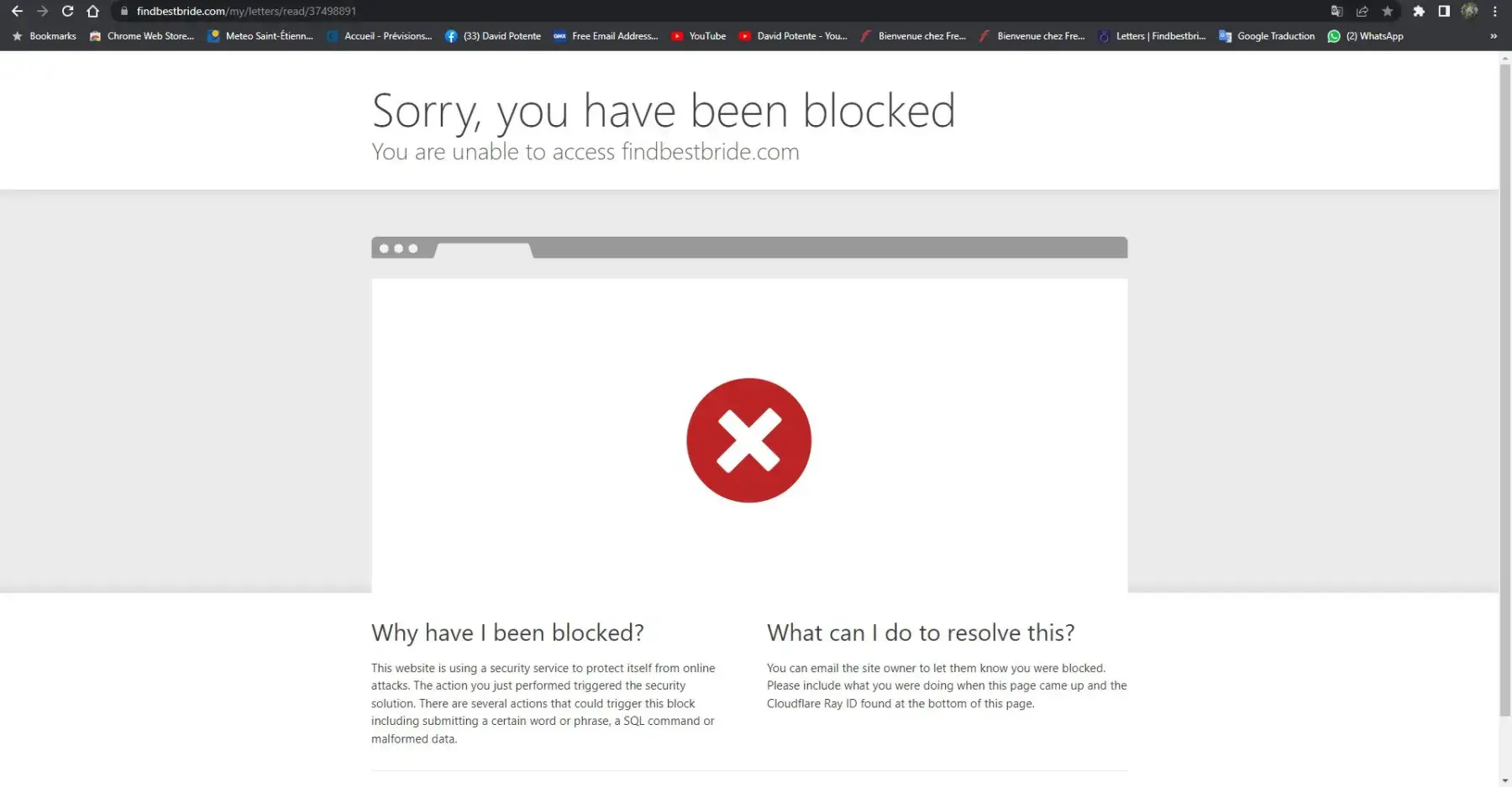 Since last night, I no longer have access to your website. Your server does not allow me to access even your website. I still get the same blocking message.