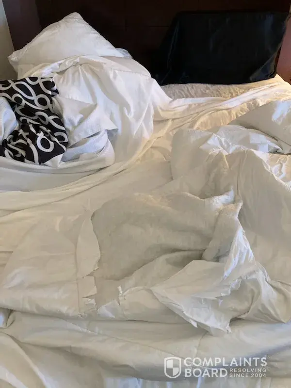 I requested another room when we got into that room again not cleaned as a hotel room should be. Room had a musty smell I was so uncomfortable sleeping or staying in that hotel I felt like I was in an hourly motel so we decided to leave. I checked into Drury Inn & Suites for what turned into a 4 night stay not a 2 night.