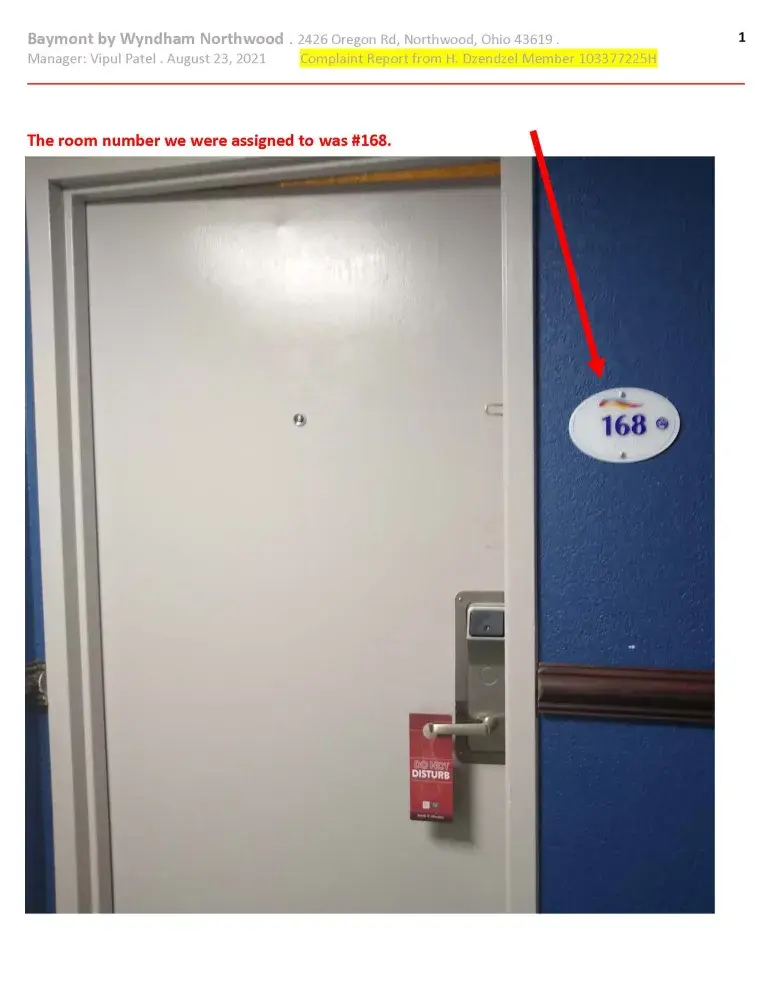 On Monday, August 23, 2021, I checked into the Baymont Northwood hotel room #168 at 3 pm. My guest and I both placed all our luggage on top of the bed and left the room within 5 minutes to meet with friends. We returned to the room after 10 pm that night.