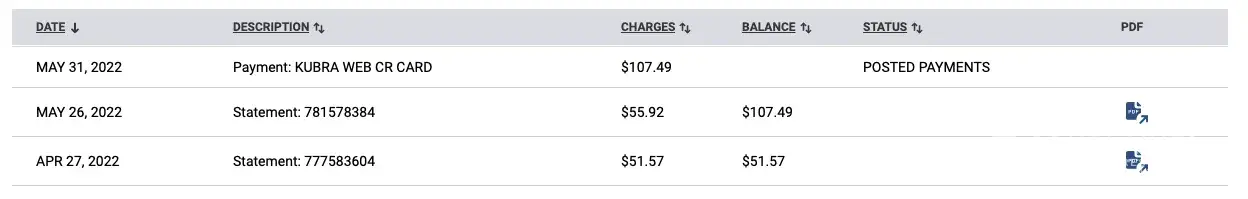 Statement: [protected] Second receipt labeled: KUBRA WEB CR CARD