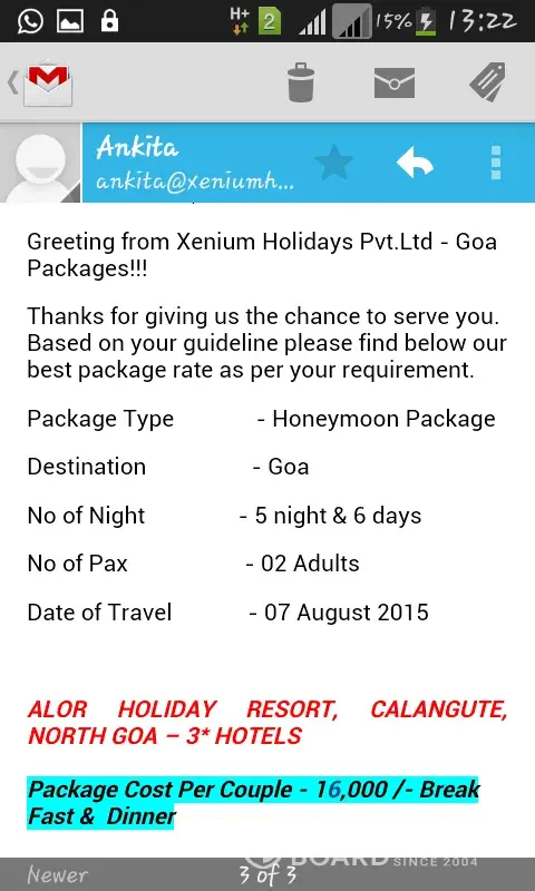 yes we blame you. coz u deserve this. you are fraud. Kind your information we have booked Goa 5 nights and 6 days package with honeymoon inclusions with INR 16000/- bt now u saying it was INR 15000/. wow ...how u r liar. after tour compelete now u want to show that it was 15000?. yahi tumhara jhut sabit ho gya.