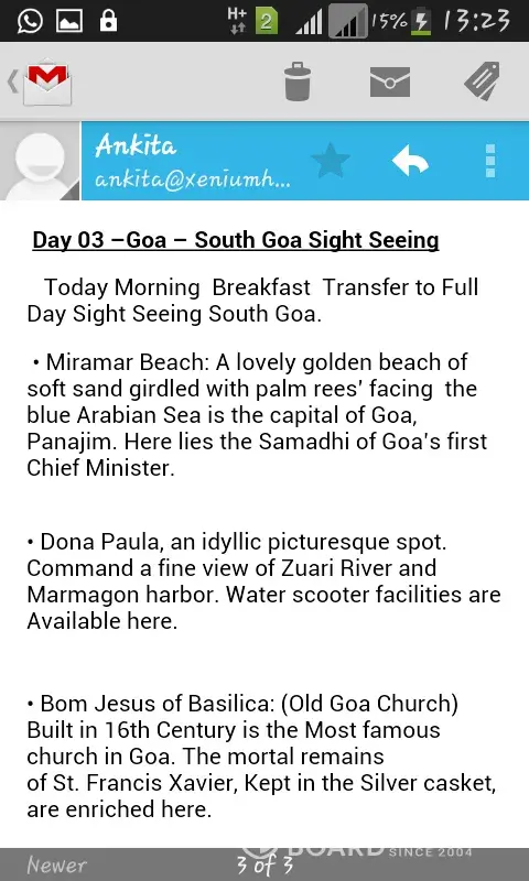 No email about the trip