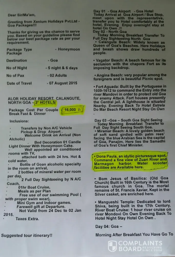 As we mention this is not a genuine review and not a client of xenium holidays. As behalf of company we already requested to this client and give the numbers for contact if any issues but till now we don’t have receive any single call or mail regarding this review, as your review you mention your name and details but please check the review details but if any issues then you can discourses with our service quality department and they will solve your issues. We don’t recognizes the details of this clients.