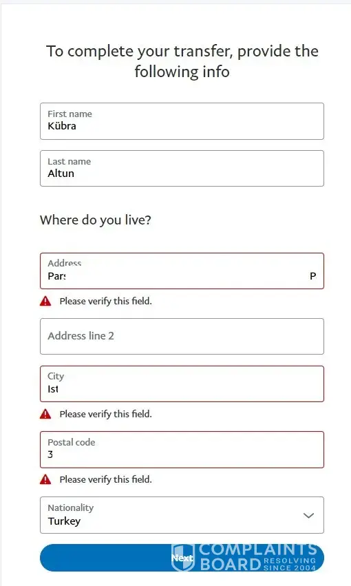 I am trying to transfer my money to a bank or a local atm (cash pick-up) but no matter how many times I try I face a problem at the address step. For the last 3 weeks, I am trying to send money, but I fail because of this problem.