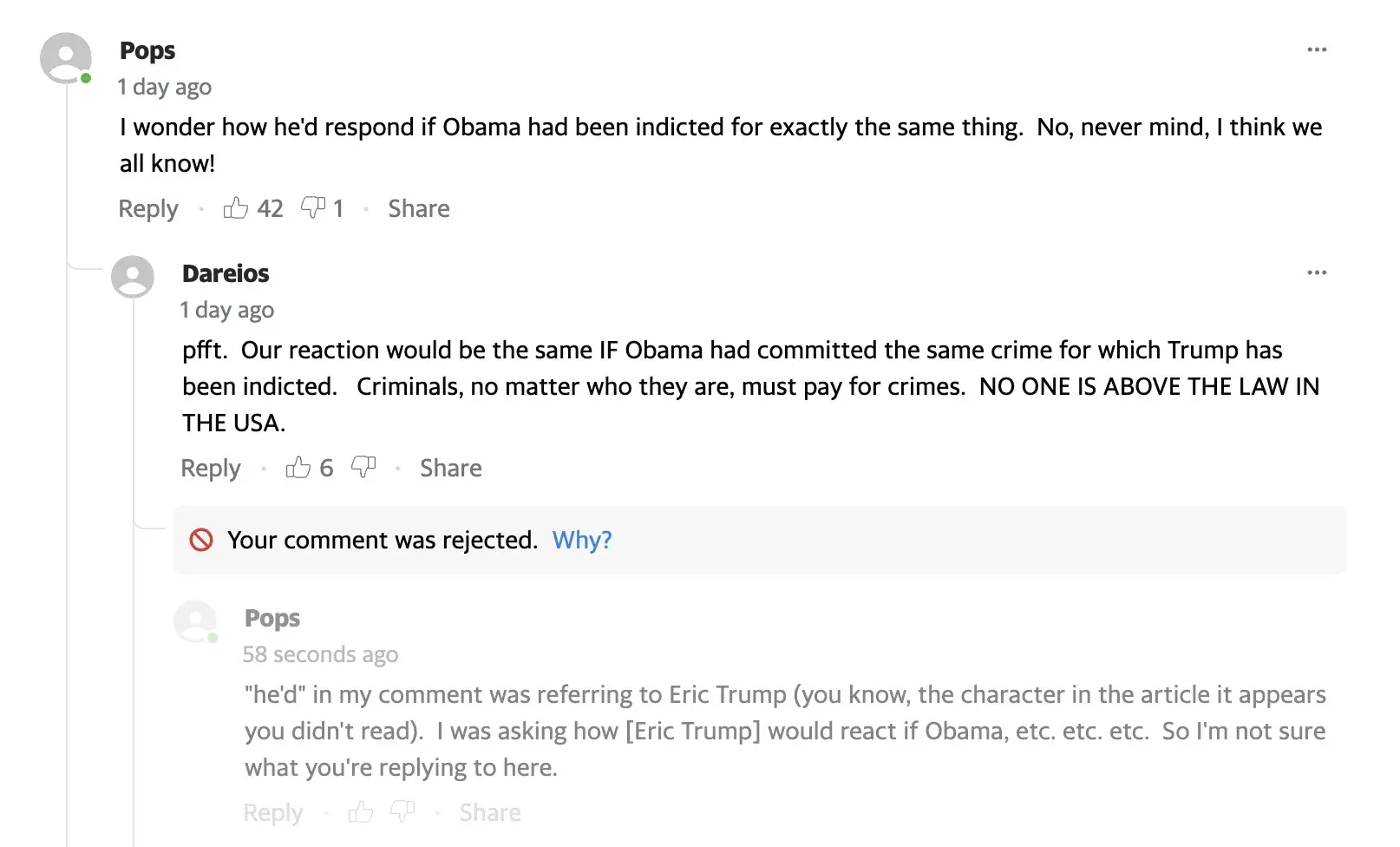 My comment was rejected yet again for saying " Trump Trump Trump Trump 2024". I don't understand how this goes against guidelines?