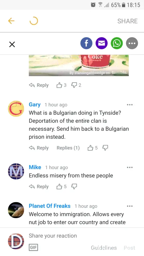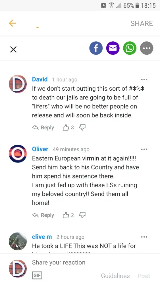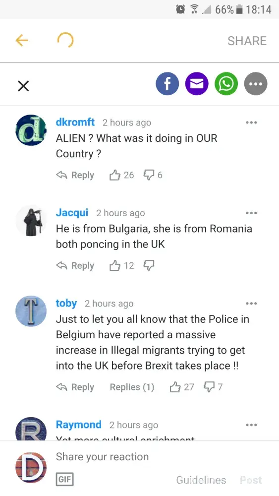 Discrimination and racism seems to get higher this days in UK towards EU citizens so all this news stories should be closley monitor. I hope that Yahoo takes serious racism and will take the appropriate measures. Thank you