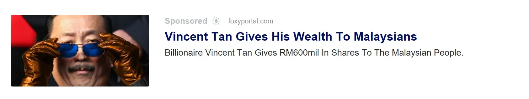 Every time I open Yahoo Malaysia I see a sponsored banner ad which is clearly soliciting people to participate in a cryptocurrency scam - complete with fake comments from "satisfied users". The link directs you to an official looking website where they show a video cut together from news footage. The same ad is also published siting another well know Malaysian Tycoon Robert Kwok. How does this stuff keep getting banner advertising on Yahoo? Don't you even look at what advertising is posted? I tried to post a comment to add to the list of glowing comments but it's actually greyed out...