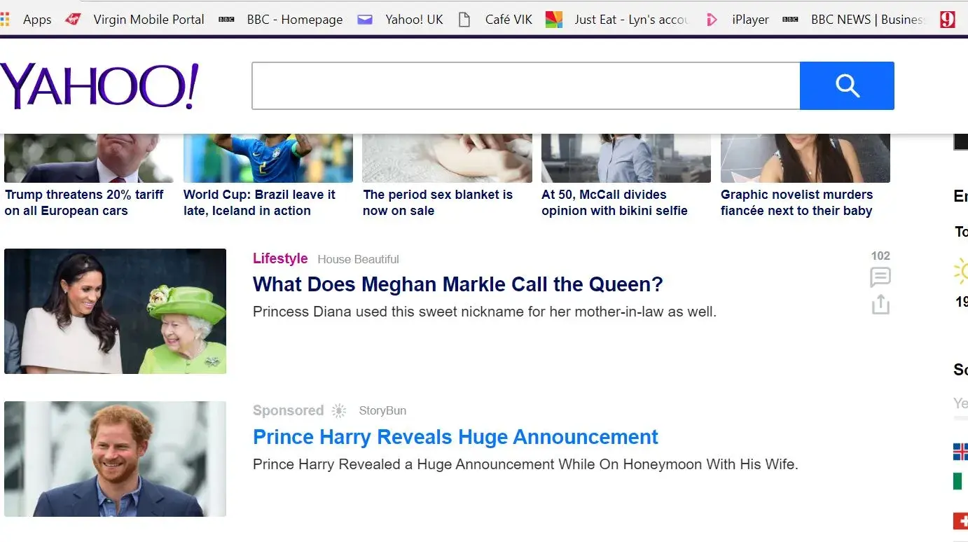 Notably a story about Prince Harry making a "Huge Announcement " which is linked to a page at