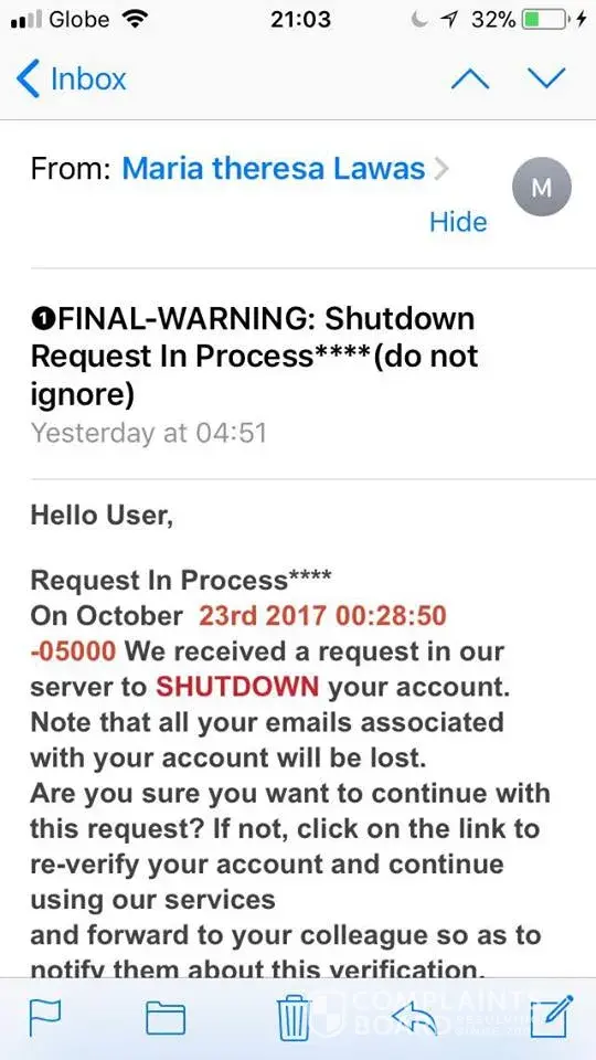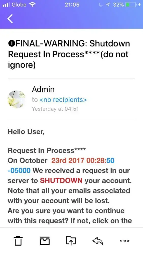 I had received 3 messages like this from them and On my case thus this mean that alvin_tess is the one who is trying to shut down my account?