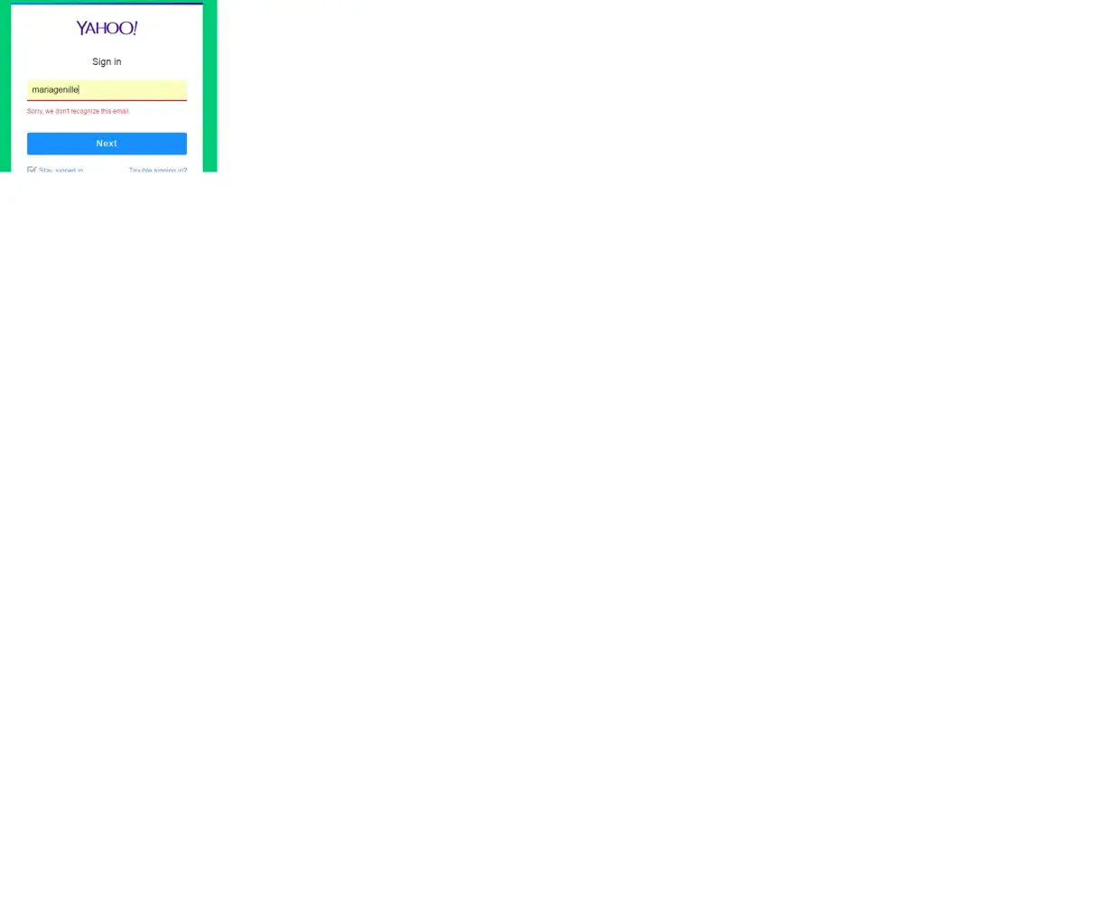I don't know what happened to my yahoomail but when I entered my yahoo ID (mariagenille), yahoo won't recognize my ID saying "Sorry, we dont recognize this email". I tried signing up with the same account ID hoping i could save my ID but after typing the same yahoo ID (mariagenille), it says "A yahoo account already exists with this email address" I've been using my account since year 2008 and I've also been using it for the past few month, i don't know why it was removed, blocked, or suspended. My yahoo ID is very important because it is my official email address and I'm using it with all my accounts and business transactions. In my account also are the important documents sent by my business transaction and I also have saved documents in there. Hoping for yahoo team's fast solution to this problem.