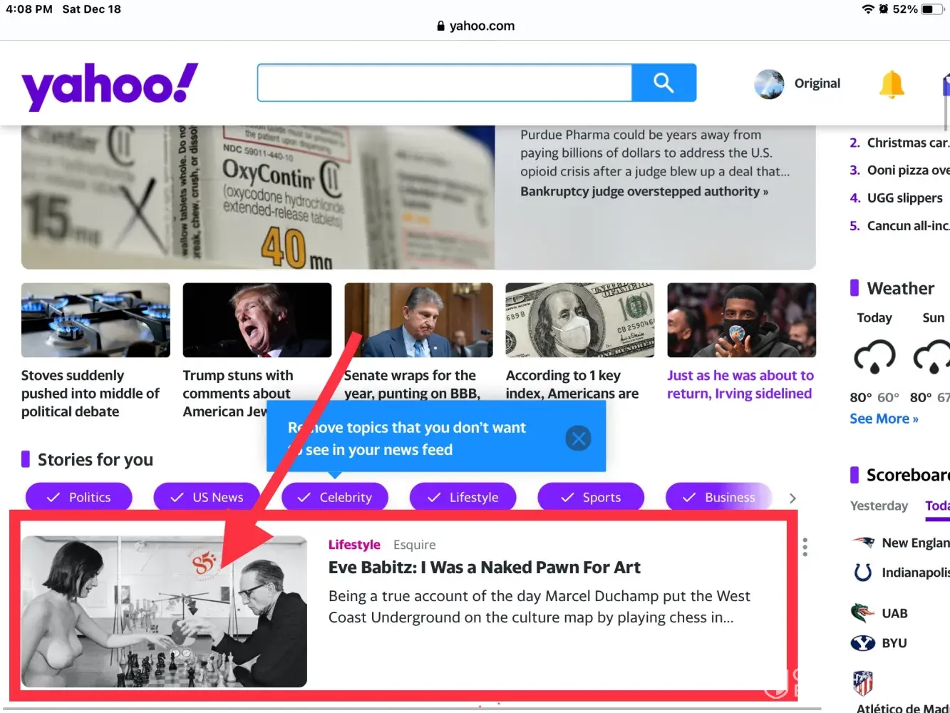 Is there any particular reason you allowed the nude picture of Eve Babitz playing chess to appear under the Stories for You section of your news feed? Seriously! You know kids see these things. In all the years I've been using YH I have never seen nudity in any form or fashion. Are your people not monitoring what is allowed to appear on your home pages? WTF!