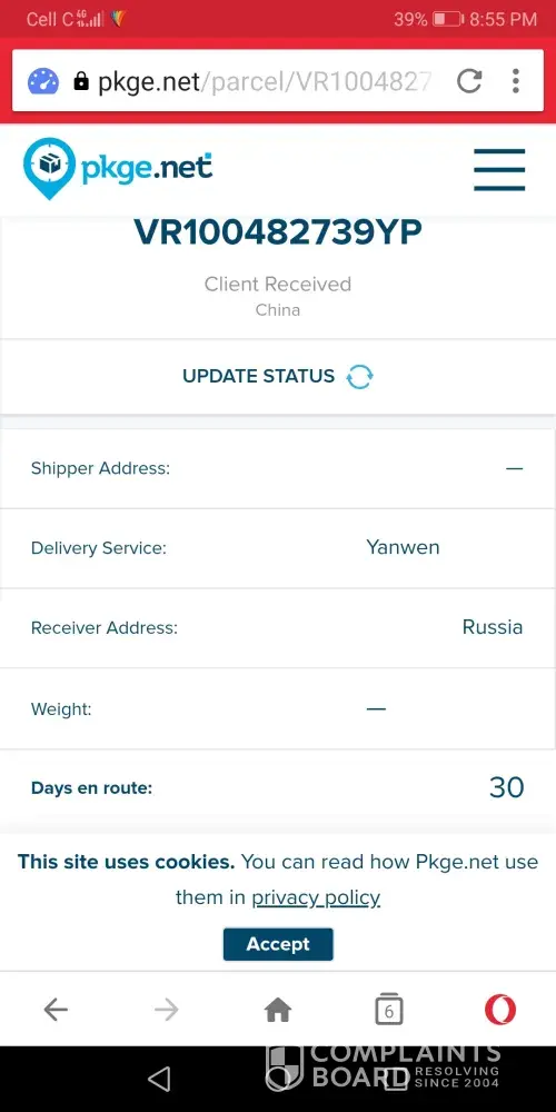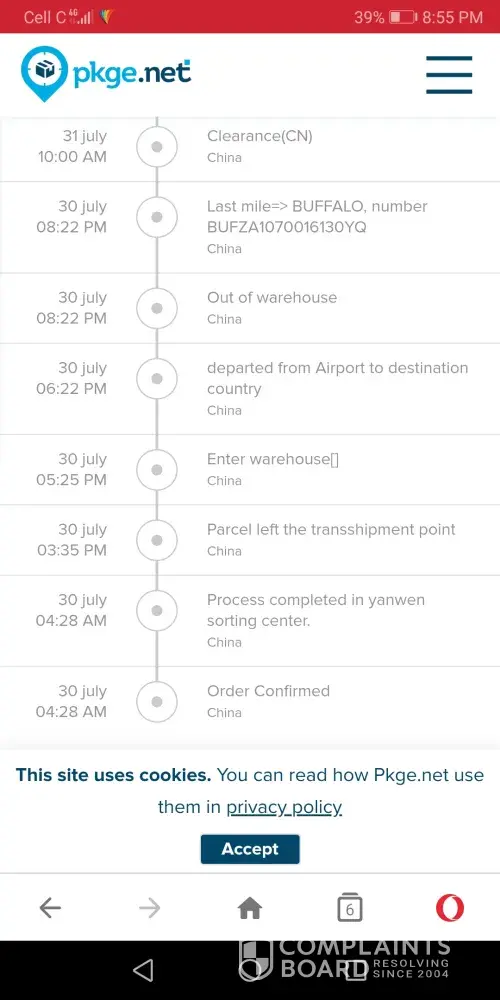 I have placed an order from Aliexpress on 1st August 2019, which was suppose to get delivered at Delhi by Yanwen Economic Air Mail on 4th of October 2019. But its 6th October 2019 and I haven't yet received my parcel.