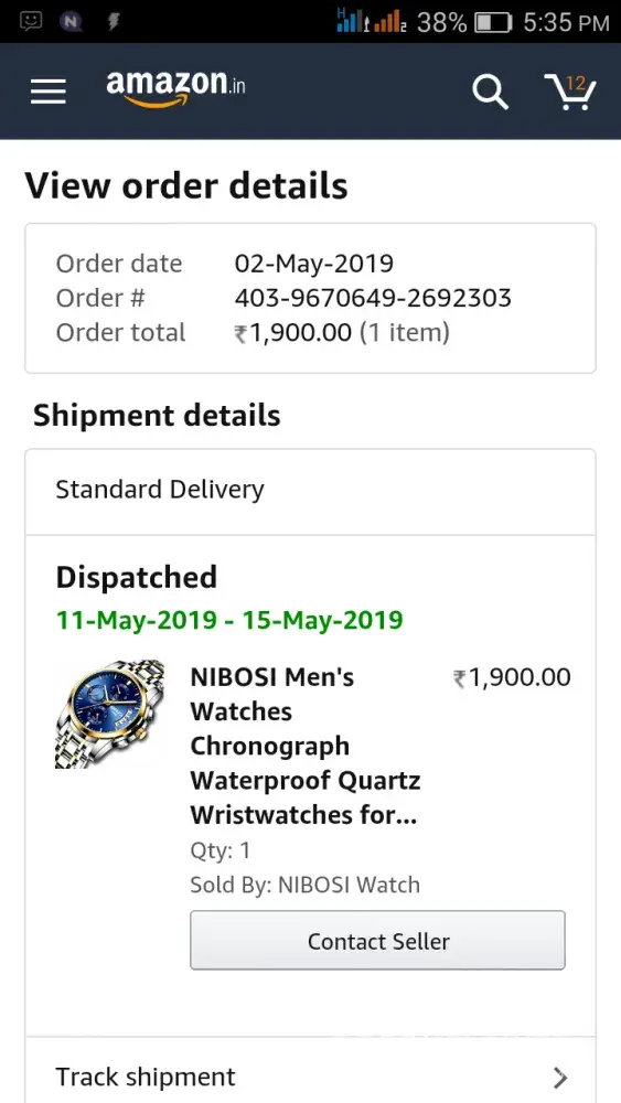 Hi my name is komal from india in nagpur district, i ordered nibosi watch on 2nd may 2019 but at that time my order is not delivered.