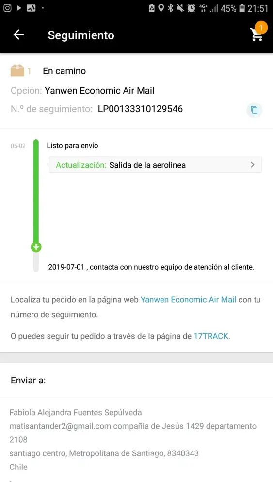 I contact you because i buy to many clothing and send with yanwen and track and said before send from diferent place and now i track againg and said is in sale and i dont know what happen because is my clothing