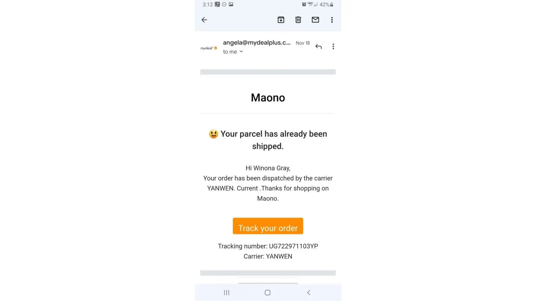 Ordered this product on November 17, started receiving emails from [protected]@ maonocaster.com on November 22 that product has been shipped by Yanwen, and given a tracking Number UG722971103YP. I added AfterShip (Yanwen) to receive updates. I started getting mad when received email from Angeka that i would have to pick up package or it would be returned. I emailed where from and got no response. My package was suppose to be delivered to my residence. AfterShio message on December 1 at 9:55 am, said it would be delivered on December 1 within 3 to 6 hours. No package received. I want my package. I feel I've been duped by Maono and Yanwen.