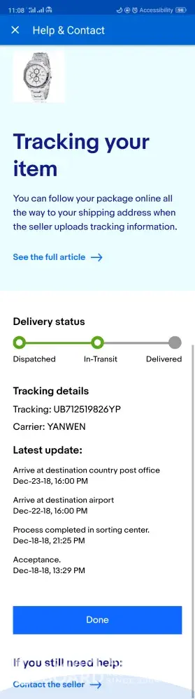 Hello I bought a watch from china and it was sent to me in Uganda through you(Yanwen) and this is the tracking number *UB712519826YP* but the item is still in china as per the tracking records, i have been tracking it for some time bit shows the same thing the destination country is Uganda, not china, more details are in the screenshot, attached, kindly do something as soon as possible. Thank you.