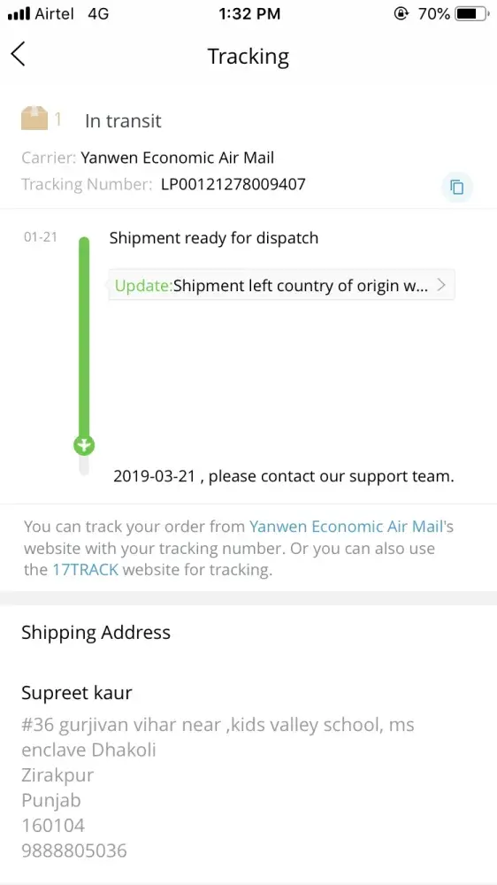 Tracking Number UB754273602YP. Why hasn't this item been shipped to India. Last update was 05/01/2019. I want you guys to ship it to the customer's address as soon as possible. Loss of reputation. Should have reached way earlier. Yanwen should be more responsible. The product is stuck at Hong Kong since 30days. Customer is complaining a lot. Kindly ship it as soon as possible.