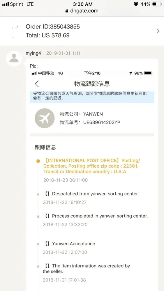 2019.01.04 22:57 (gmt-7): despatched from yanwen sorting center.