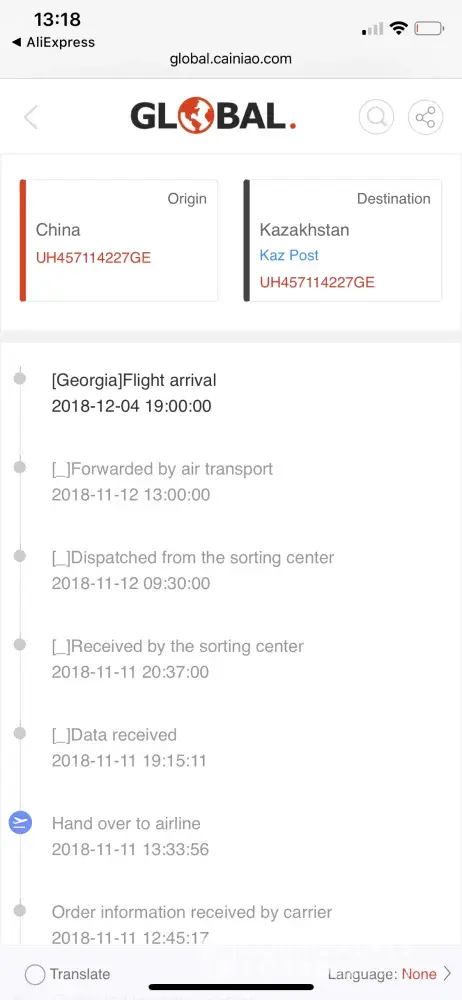Will you please check if it was sent to Georgia by mistake or it's gonna be shipped to Kazakhstan.