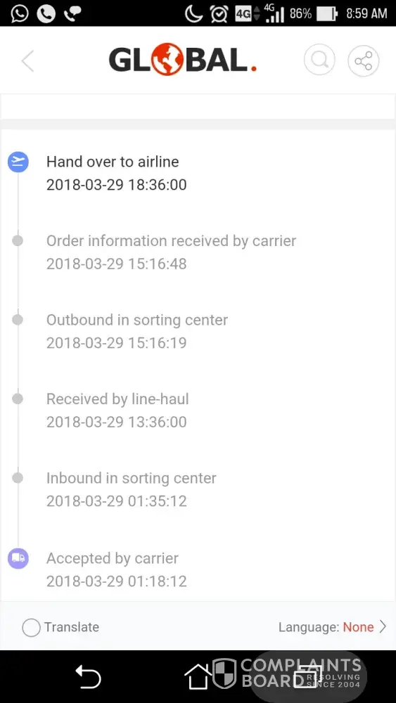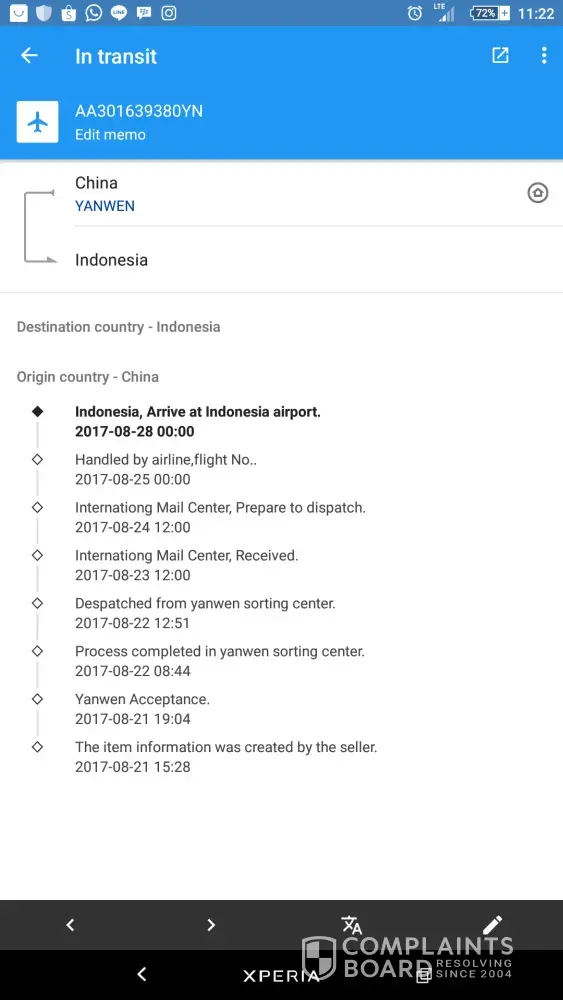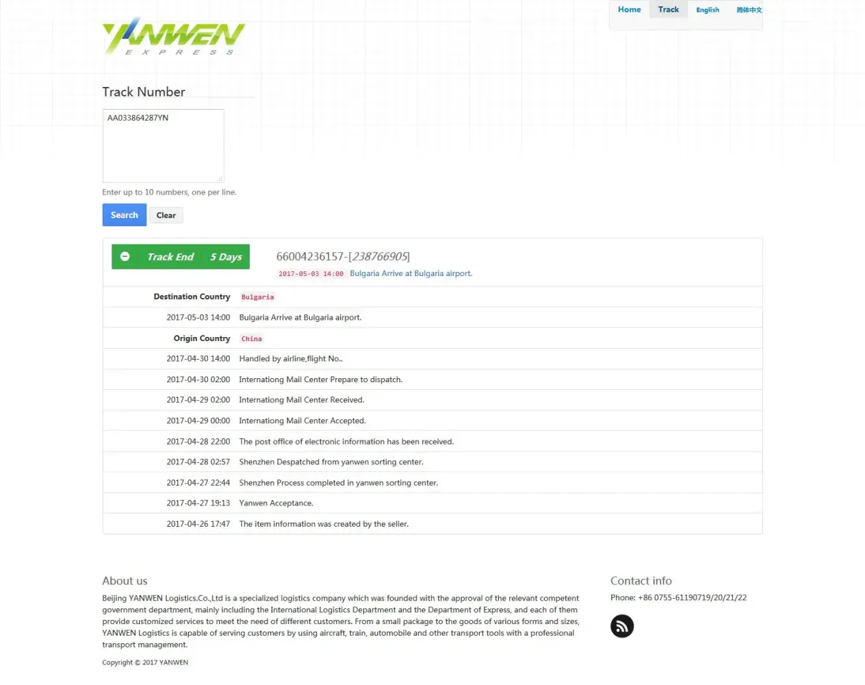 I still expect a comment at least from the courier company Beijing YANWEN Logistics.Co.