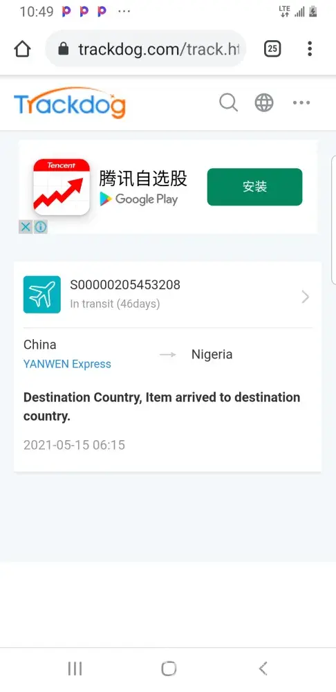 Yet to be delivered to consigned & no forwarding correspondence to the effect .Please kindly oblige the address & contact of where to receive my package in Lagos Nigeria, since it has arrived its destination on 2021-05-15 according to the tracking.
