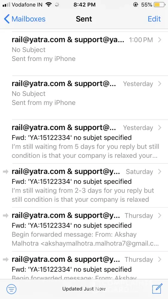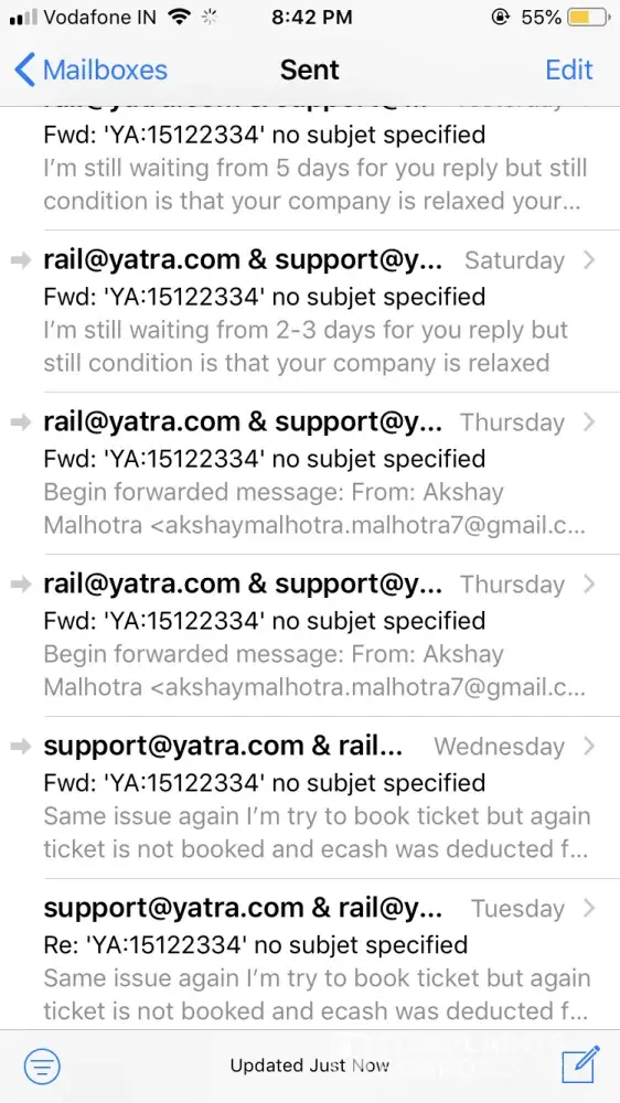 yatra support was not replying me to one mail