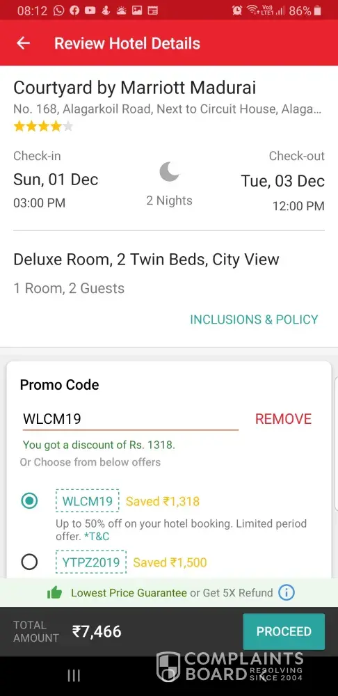 I booked hotel through yatra.com. The following are the details.