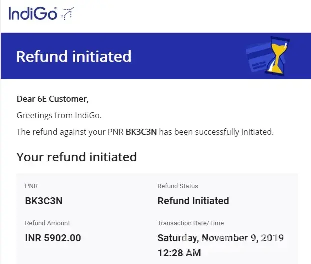 Refund amount from Airline : INR 5902.00