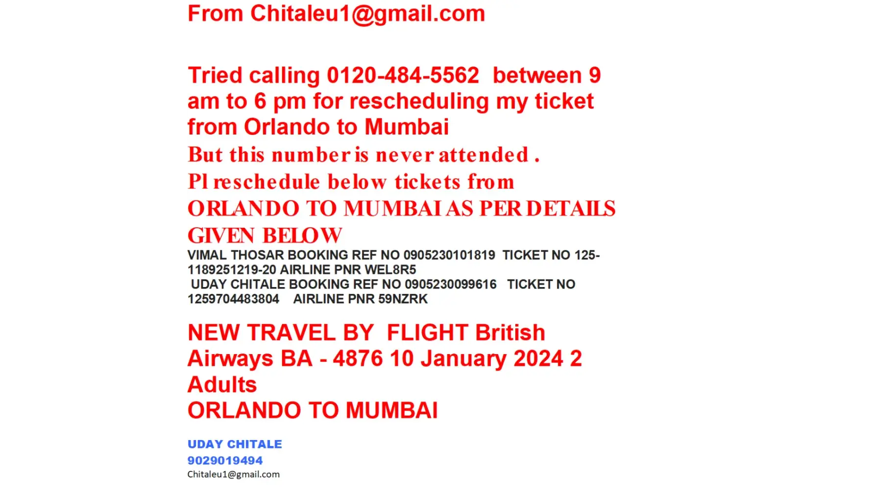 UDAY CHITALE BOOKING REF NO [protected] TICKET NO [protected] AIRLINE PNR 59NZRK
