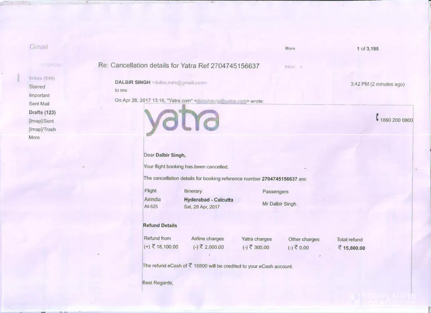 COMPLAINT AGAINST YATRA
