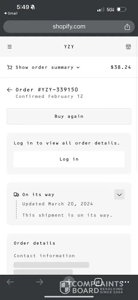 I paid $238 on Yeezysupply.com including shipping. The security camera captured the delivery driver wearing a mask, but not the usual uniform. The package was shown as delivered on the tracking website, but I had never seen a package left at my front door. Additionally, it was impossible to get in touch with the delivery company due to their notoriously poor customer service. I tried to contact Yeezysupply, but they did not resolve the issue either. The tracking number is unavailable. I hope Complaintsboard.com can assist me in obtaining a refund.